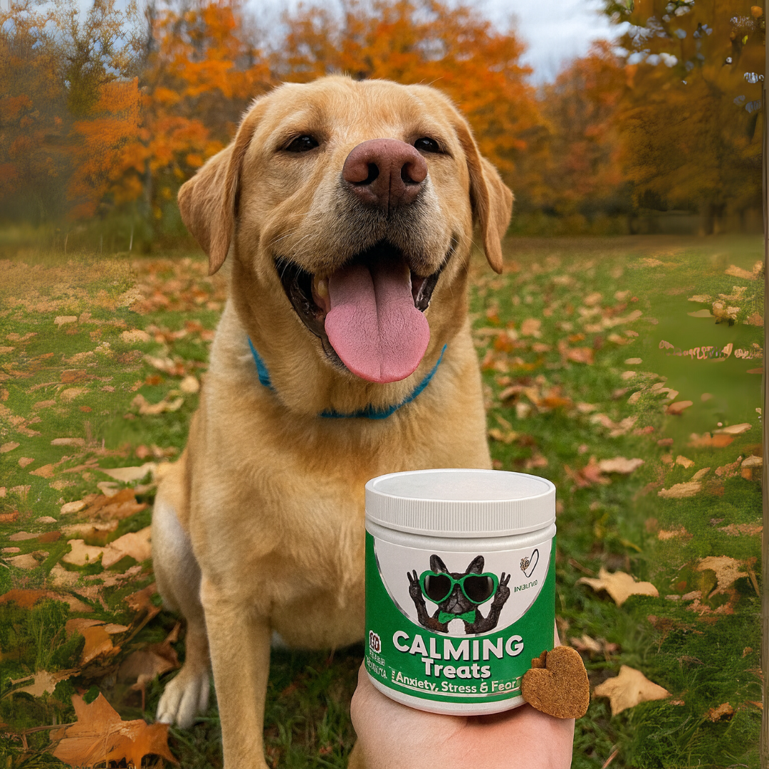 Our premium Calming Treats come in a tub of 120 soft chews, featuring up to 2–3× more active calming ingredients than leading competitors (based on label comparisons). Each chew is carefully formulated to help dogs stay emotionally balanced, reduce unwanted behaviours, and manage daily stress — all while keeping them alert, playful, and themselves.